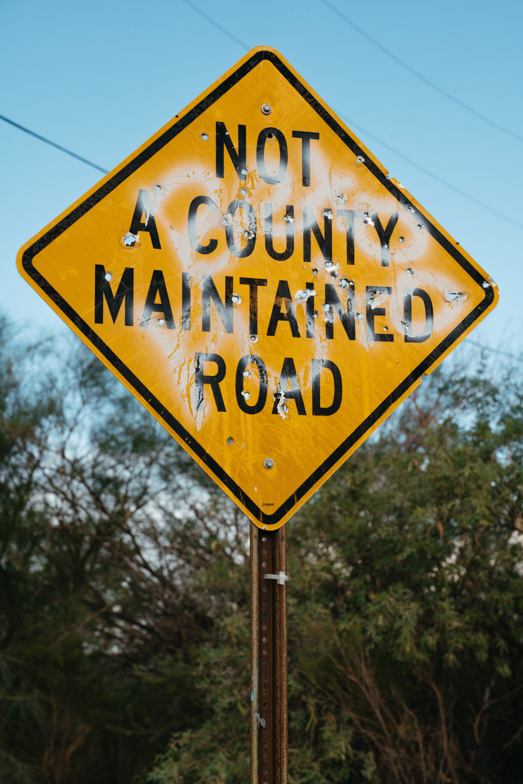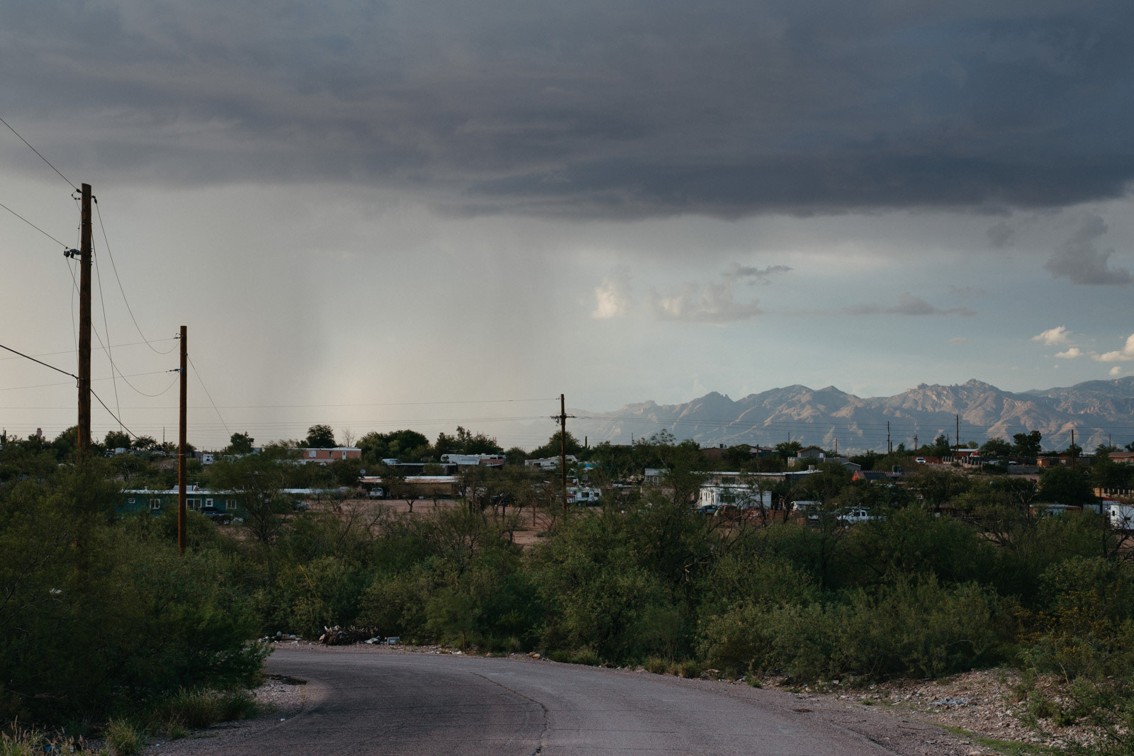 Just south of Tucson in Summit, Christopher Galindo said that when his parents moved to their current home about 15 years ago, the seller promised that the roads would be paved. Over a decade later, the land that falls on Pima County has only fallen deeper into disrepair; a sign covered in bullet holes states, “not a county maintained road.”