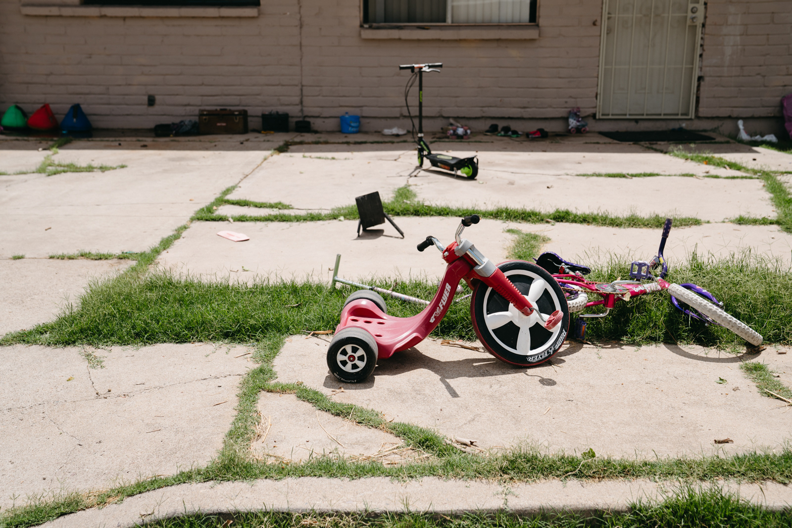 Kids toys scattered in front of a house in Chula Vista / Adrian O'Farrill