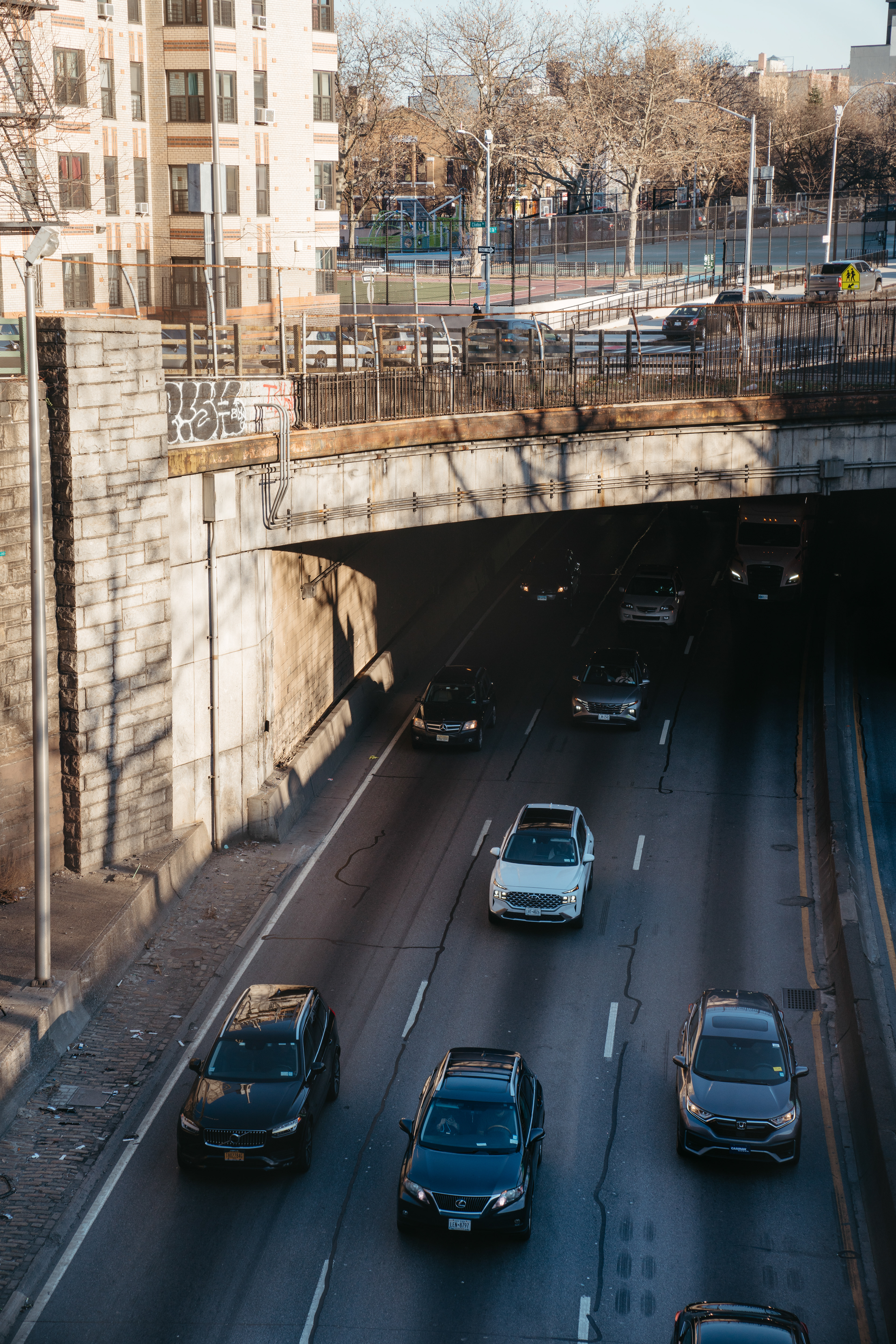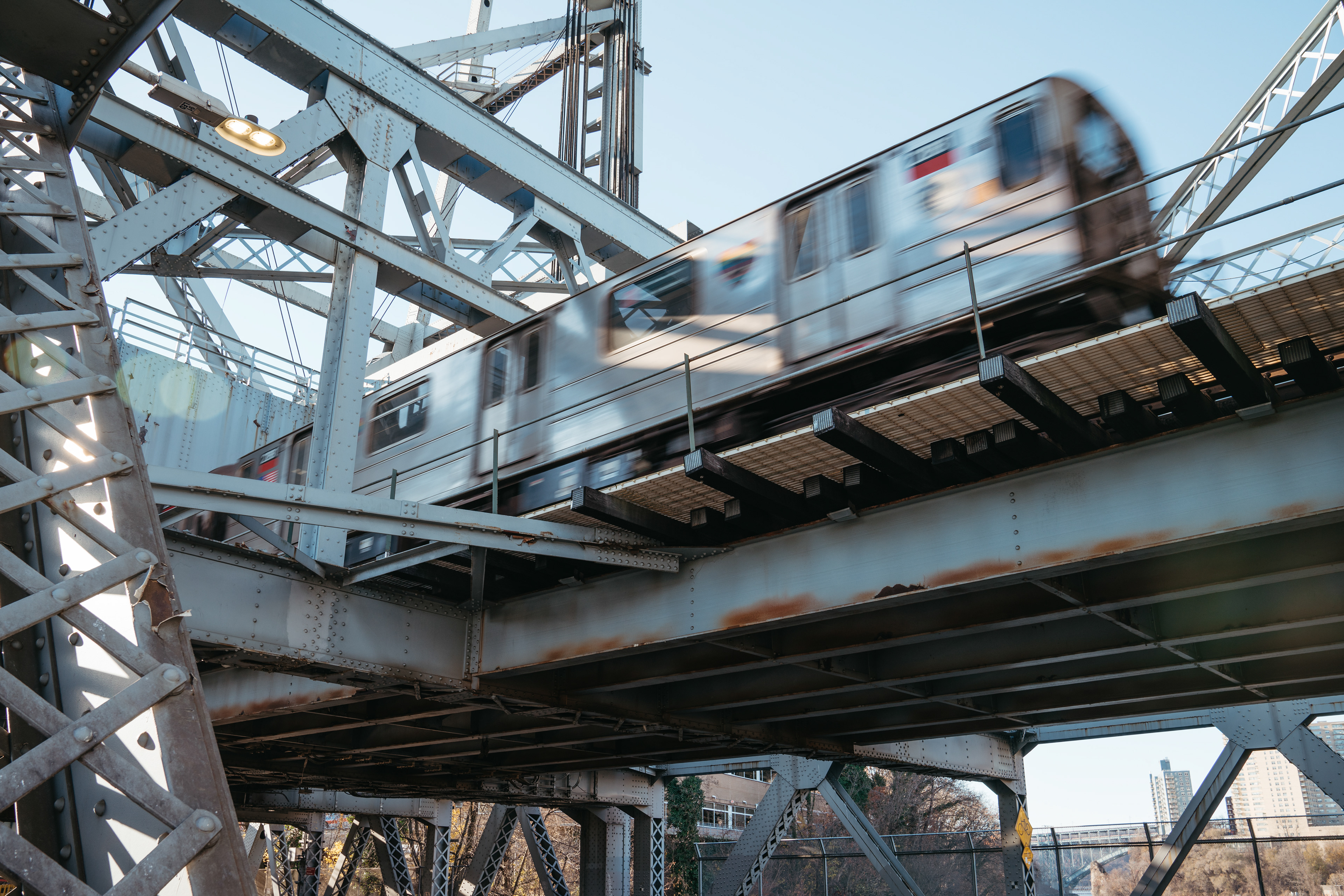 The 1 train heading north towards The Bronx and passing over the Broadway Bridge